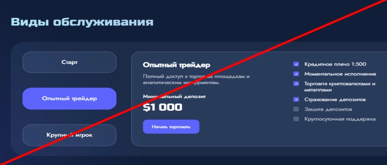 Более дорогой счёт предлагает полный спектр услуг платформы, более крупный доход, но играть здесь нужно по-крупному. Минимальный депозит – 10000 долларов. Такие тарифы предусматриваются для опытных инвесторов.