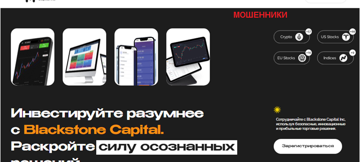 Брокерская компания Blackstone Capital Inc предлагает присоединиться к ее команде и зарабатывать, торгуя на финансовых рынках. Она уверяет пользователей в том, что прекрасно разбирается в этой сфере, сотрудники