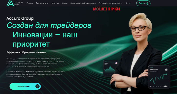 Согласно заявлениям, имеющимся на официальном сайте Accuro Group (https://accuro-group.pro), компания представляет собой международного финтех-брокера с многолетним опытом работы на мировых рынках. Она позиционирует себя как надежного партнера для трейдеров и инвесторов, стремящихся к достижению финансовой свободы.