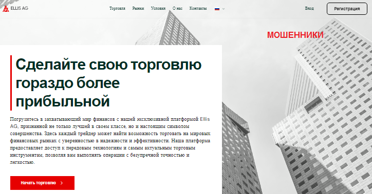 На официальном сайте брокер Ellis AG позиционирует себя как передового игрока мирового финансового рынка, предоставляющего услуги торговли валютой, акциями, криптовалютами и сырьевыми активами.