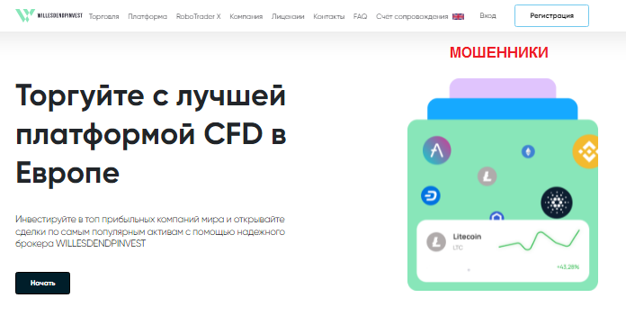 Проект Willesdendpinvest — пример мошеннического псевдоброкера, работающего по классической схеме финансового обмана. Компания не имеет лицензий, юридического адреса и подтвержденных регистрационных данных, а её сайт содержит признаки фальшивки: анонимная регистрация, поддельные контакты, шаблонные тексты и фиктивная статистика. Не открывайте счёт, не переводите деньги и не доверяйте свои данные представителям Willesdendpinvest. Это финансовая ловушка, цель которой — обманом выманить деньги и исчезнуть.