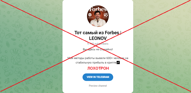 Ведущий Телеграмм-канала Тот самый из Forbes | LEONOV выдает себя за опытного трейдера, хотя сам таковым не является. С помощью перепечатки биржевых новостей он формирует свой образ финансового эксперта и используя этот антураж пытается продать посетителям подписку на бесполезный информационный ресурс.